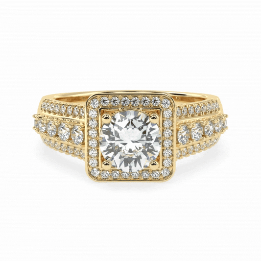 Band Type Double-Row Pavé Band Metal 18K Gold / Platinum Cut Round Brilliant Ring Setting Square Halo with Pavé Band Centre Stone Diamond (Lab or Natural) Side Stones Full Pavé + Accent Rounds Total Carat Weight ~1.59ct (Customizable) A Court of Brilliance and BalanceWith its bold pavé shoulders and...Regular price £960.00 GBPRegular priceUnit price per -