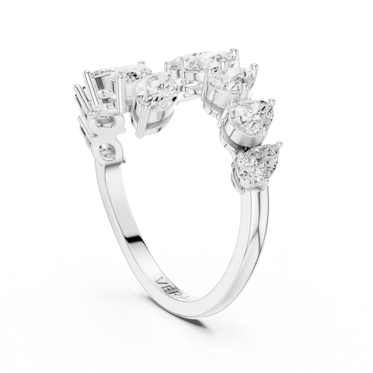 The Cascade Bypass Ring is a celebration of light in motion. Marquise and pear diamonds flow in a deliberate, sculptural rhythm, creating a natural cascade that dances across the finger. Its open bypass design gives a sense of effortless weightlessness, while each curve is carefully crafted for harmony and grace....