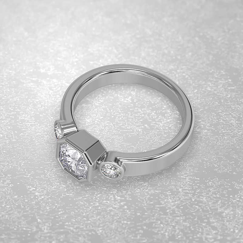 Perfect For: Those drawn to contemporary aesthetics. It’s versatile, a neutral canvas that enhances the brilliance of diamonds.