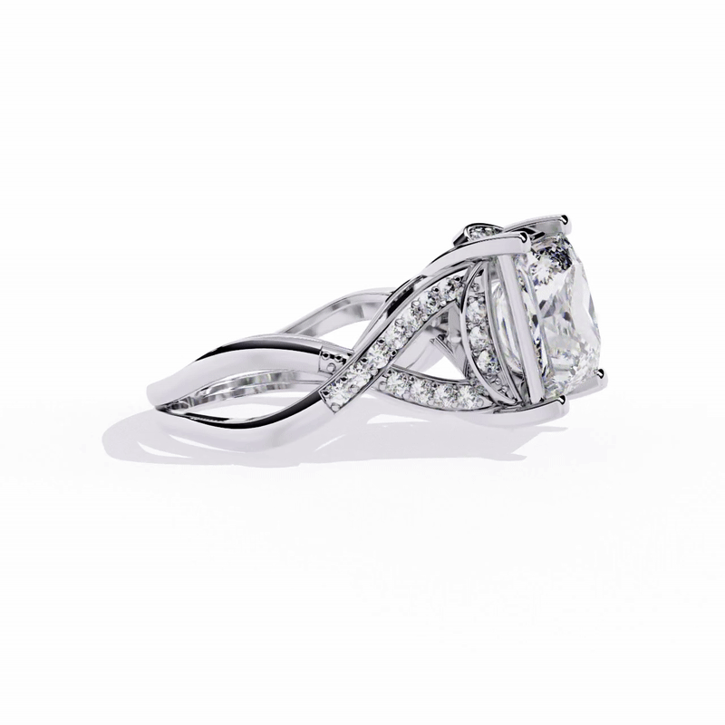 sculptural interpretation of unity. A stunning princess-cut diamond takes center stage,