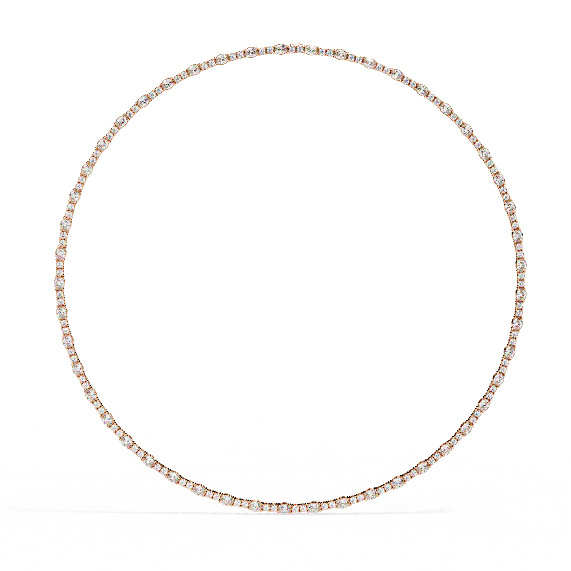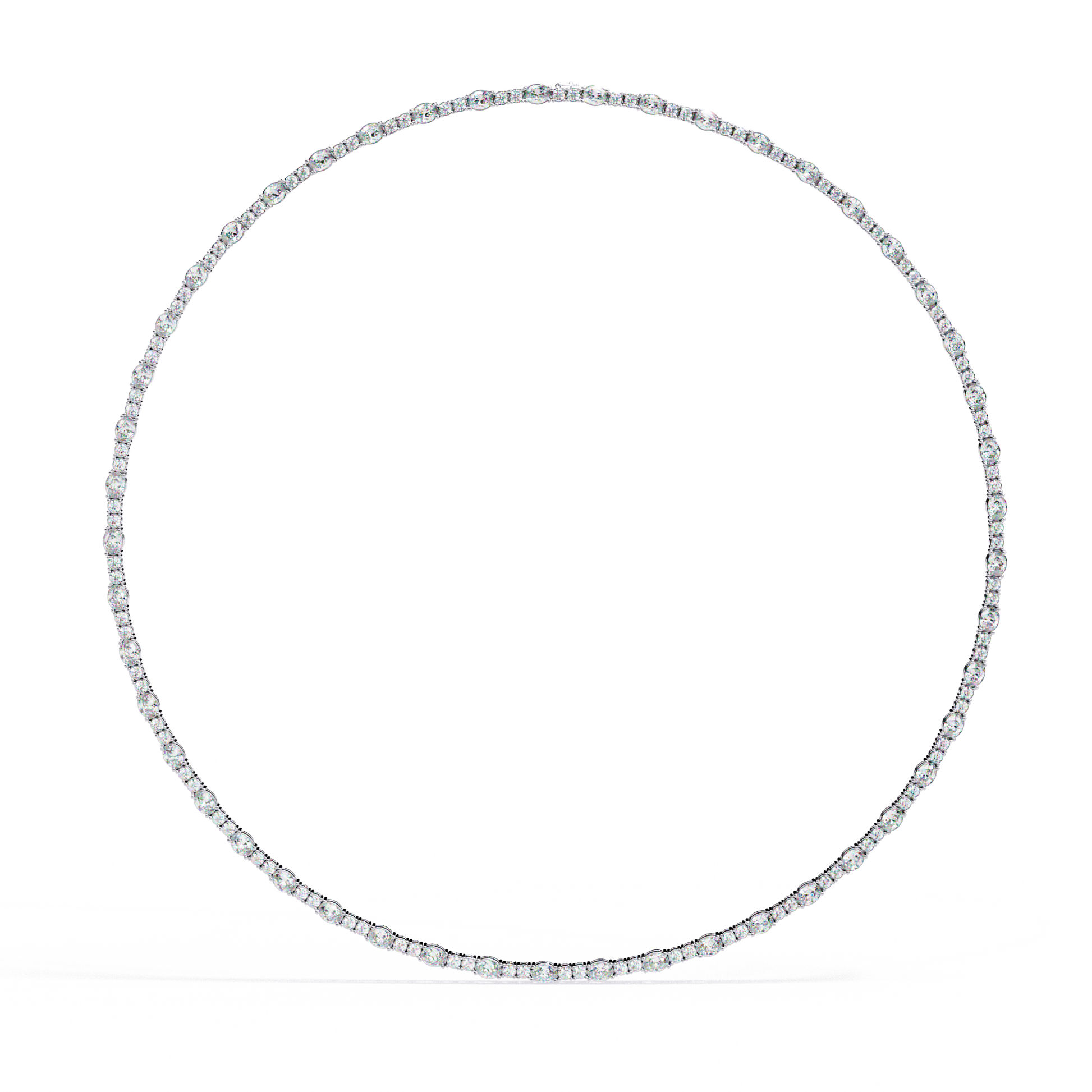 its alternating oval and round brilliant diamonds, each framed in precisely